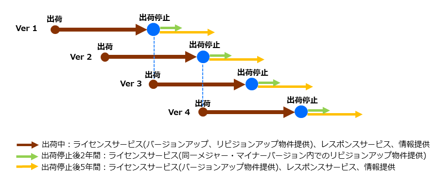 | ライセンスサービス (バージョンアップ ※) | メジャーバージョン出荷停止後 5年間 (※1) |