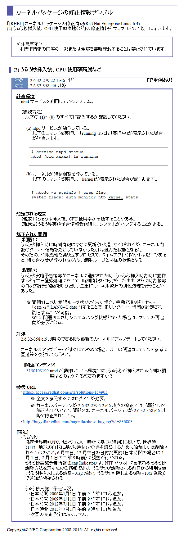 NEC Linuxサポート情報リスト