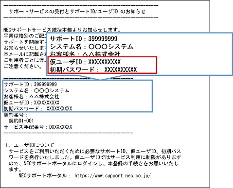 [NEC] サポートサービスの受付とサポートID/ユーザID のお知らせ